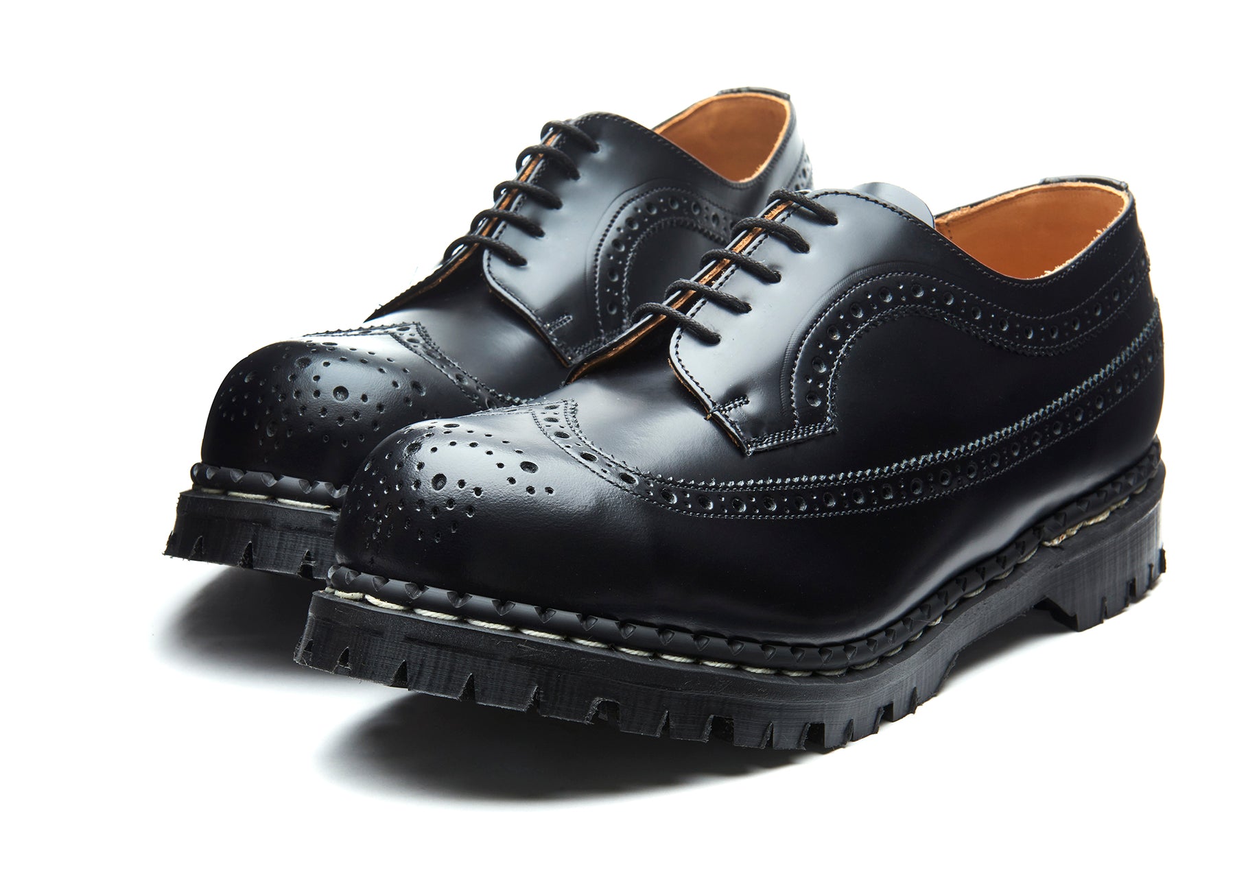 Solovair Men’s Black Hi-shine Steel Toe American Brogue Shoe